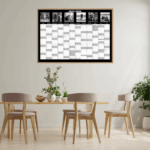 Flot vægkalender med dine egne 6 billeder i sort/hvid – Perfekt til skoleåret 2025/2026
