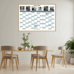 Flot vægkalender med dine egne 6 billeder i sort/hvid – Perfekt til skoleåret 2025/2026