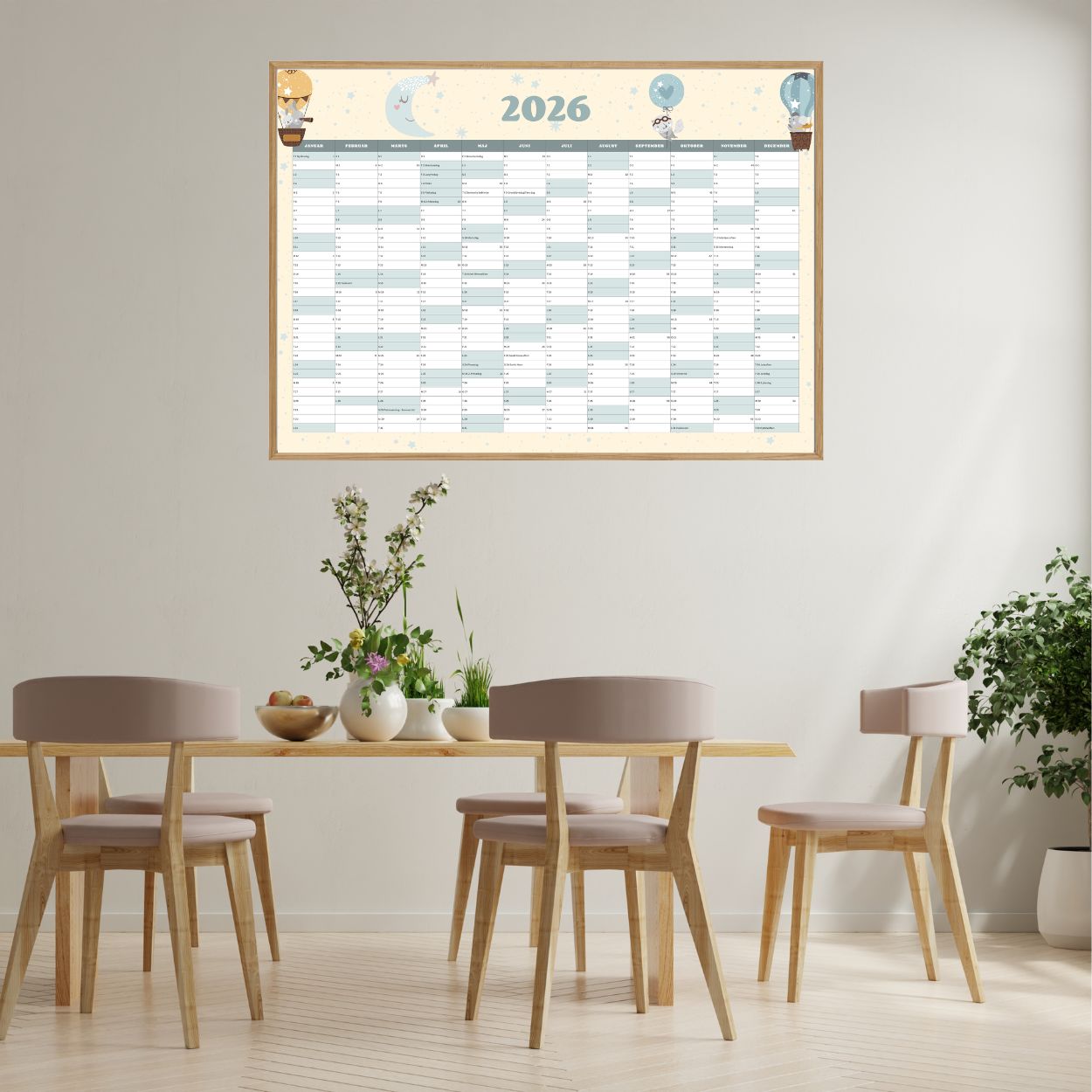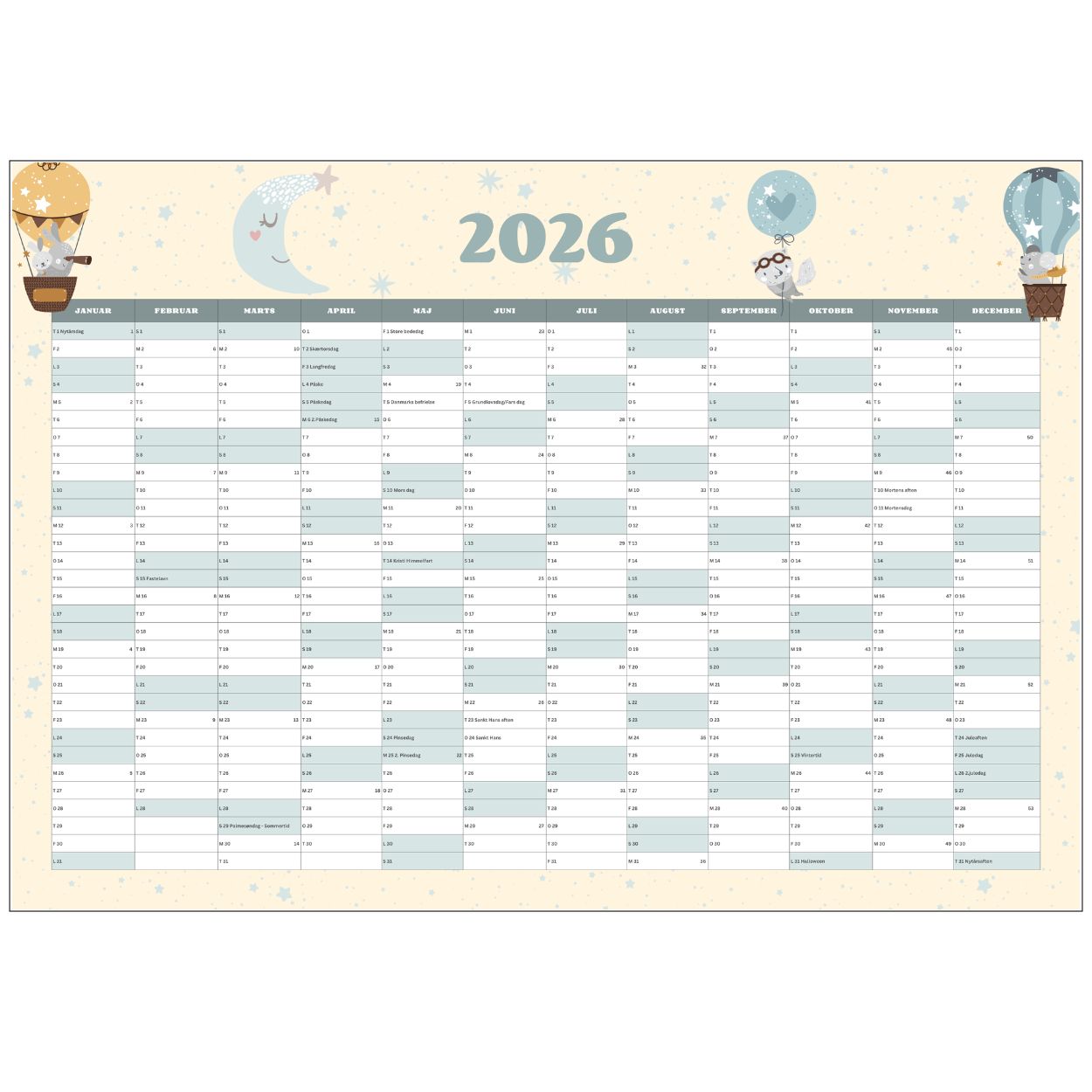 Planlæg året med stil – Vægkalender 2026 til børn med skønne motiver
