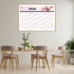 Planlæg året med stil – Vægkalender 2026 med pæoner i rosa design