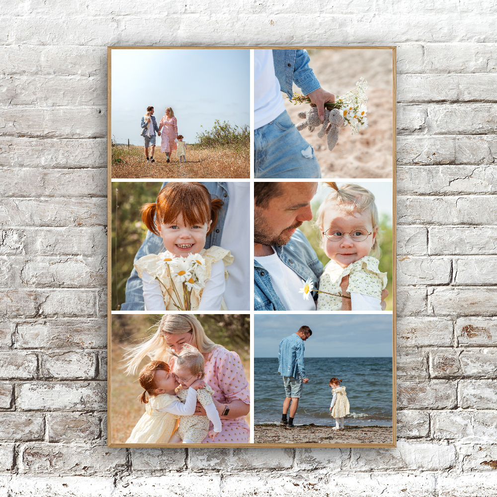 Flot fotoplakat med dine egne 6 billeder i farve, printet helt til kanten.