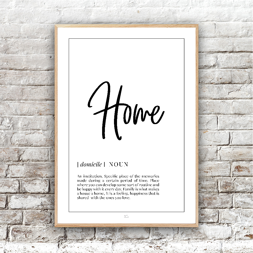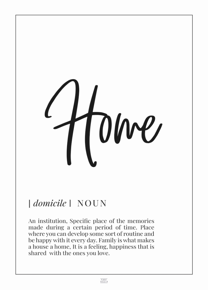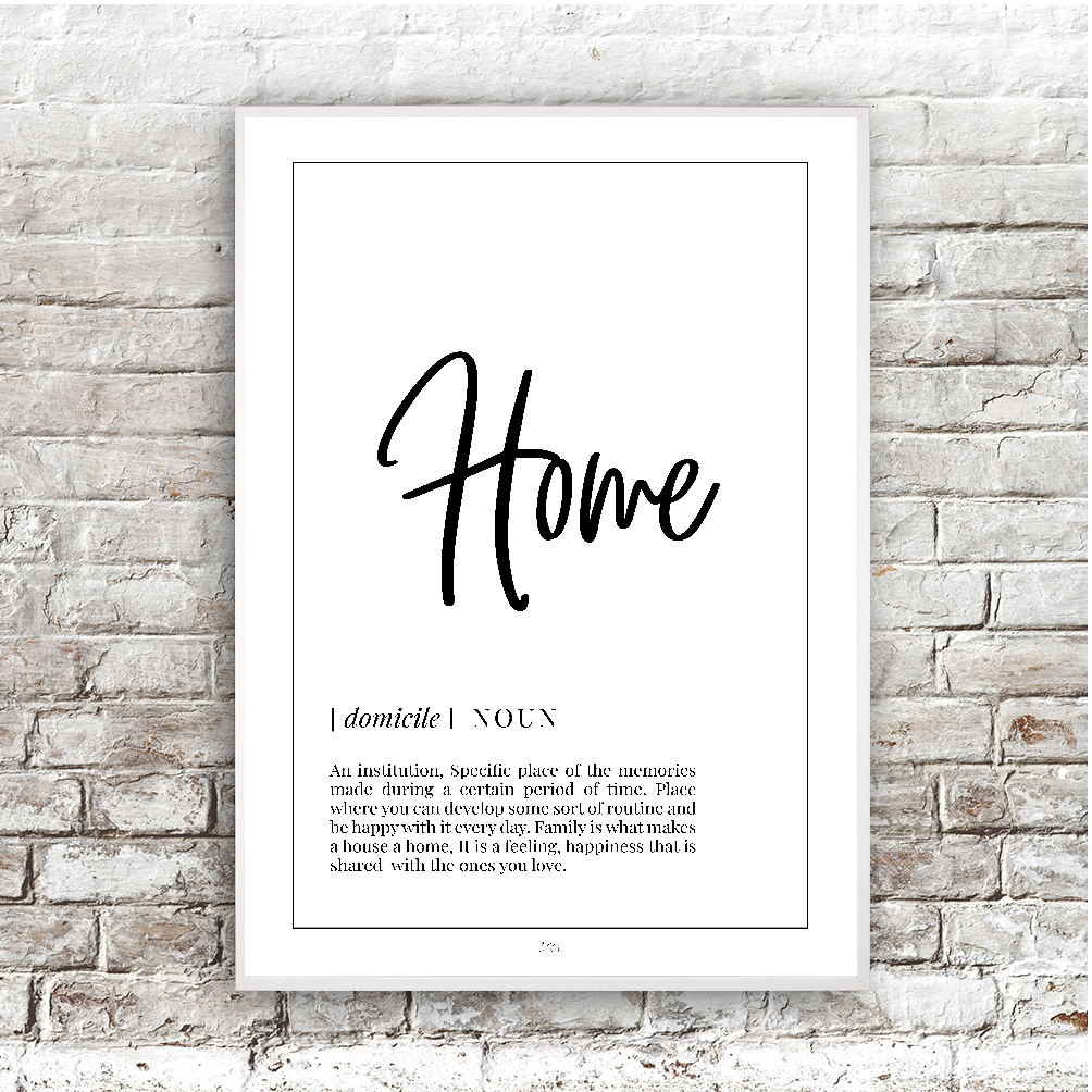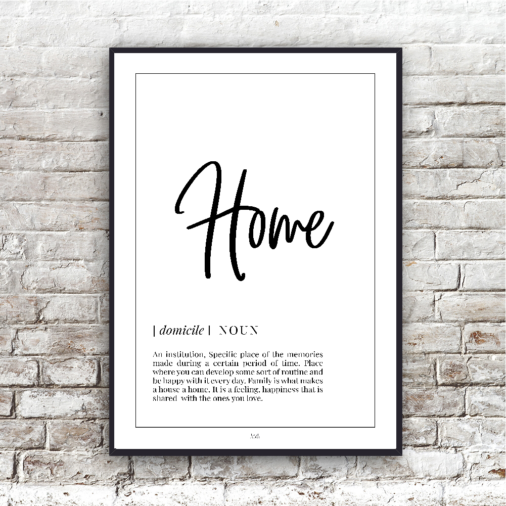 Dejlig plakat i simpelt design, som definerer begrebet Home.